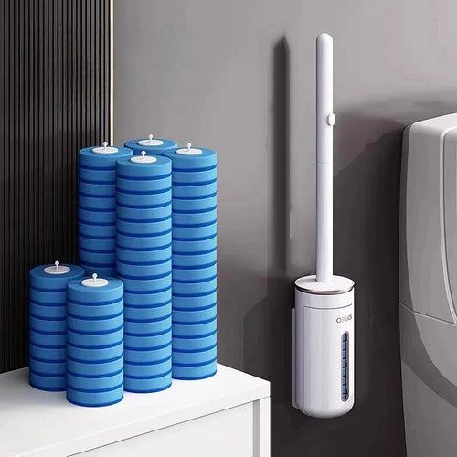 Disposable Toilet Brush with Replaceable Heads Wall-Mounted Holder for Deep Cleaning Hygienic & Easy-to-Use Cleaning Tool